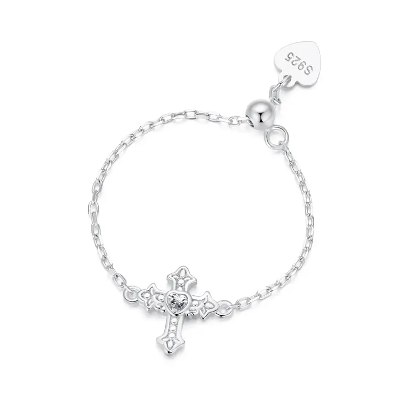 O anel cruzado é incrustado com um zircão em forma de coração no meio, com um estilo punk doce e descolado e personalidade simples.