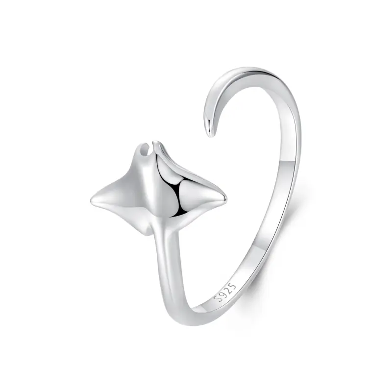 Apresentamos nosso deslumbrante Anel Aberto de Arraia Estilo PANDORA - SCR1037-E! Esta peça requintada, conhecida como "Anel Aberto de Arraia", é meticulosamente confeccionada em metal para capturar belamente a forma realista de uma arraia. O design é simples, mas transborda vitalidade, tornando-o um adição única e atraente para qualquer coleção de joias. Abrace a graça e a elegância do oceano com este cativante anel aberto, inspirado na misteriosa e majestosa arraia.