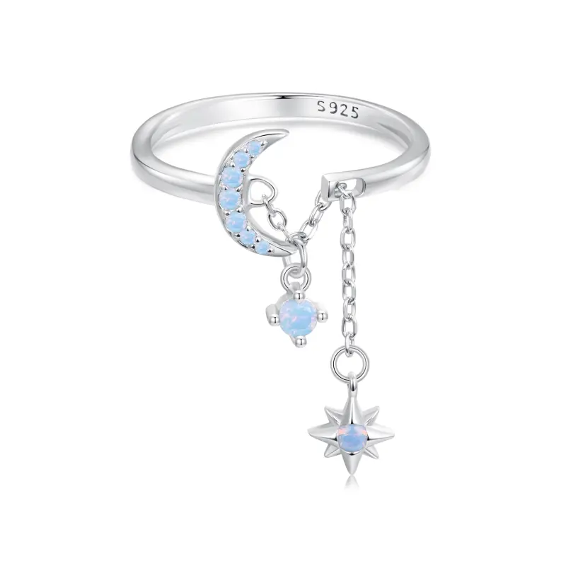 Anel Aberto Estilo PANDORA com Corrente de Estrelas e Lua - BSR548-E