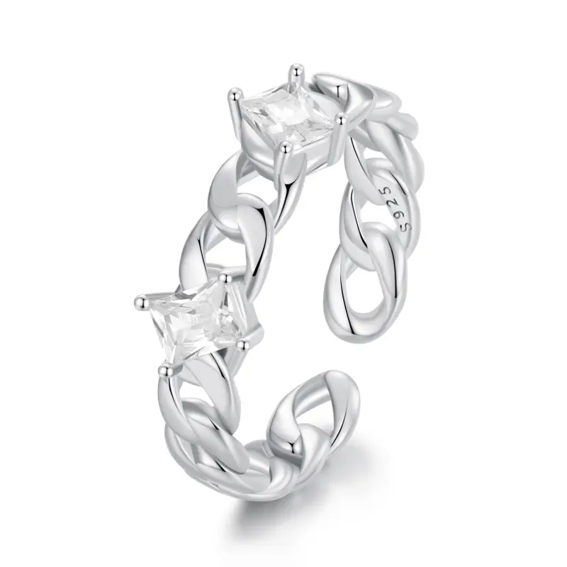 O Anel Aberto Estilo Pandora com Corrente - SCR977-E, uma peça deslumbrante que combina a elegância de correntes metálicas com o brilho deslumbrante de zircônias de corte quadrado. Este anel aberto foi projetado para fazer uma declaração de estilo, permitindo que você abrace sua individualidade e mostre sua personalidade única. Confeccionado com meticulosa atenção aos detalhes, este anel apresenta um delicado design de corrente que envolve lindamente seu dedo, criando uma aparência moderna e ousada. A corrente fina adiciona um toque de sofisticação, enquanto as zircônias de corte quadrado trazem um brilho cativante que captura a luz a cada movimento. Este anel não apenas exala um senso de estilo fashion, mas também oferece versatilidade na composição do look. Seu design aberto permite um ajuste fácil, garantindo um caimento confortável e perfeito para qualquer tamanho de dedo. Seja usando sozinho ou combinado com outros anéis, este Anel Aberto Estilo Pandora com Corrente certamente realçará qualquer visual e adicionará um toque de glamour à sua aparência geral. Deleite-se com o fascínio desta peça única e abrace seu próprio estilo com o Anel Aberto Estilo Pandora com Corrente - SCR977-E. É hora de fazer uma declaração e deixar sua individualidade brilhar.