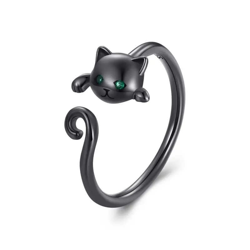 Anel Aberto Estilo Pandora Gato Fofo Preto - SCR707-D