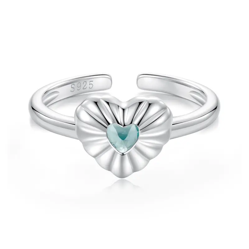 Anel Love, amor semi-tridimensional completo, cheio de sensação metálica, item fashion e individual, com vidro verde em forma de coração invertido no meio, personalidade única, implicando um romance comovente.