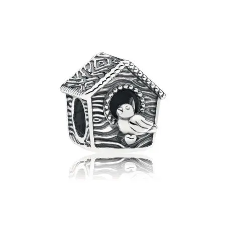 Esteja você fazendo ou deixando o ninho, este charm em prata de lei será sempre uma lembrança de casa. Ele possui uma deslumbrante textura semelhante a madeira, uma gravação "Sweet Home" (Doce Lar) e um passarinho. Charm de casa de passarinho em prata de lei com a gravação "Sweet Home" (Doce lar).