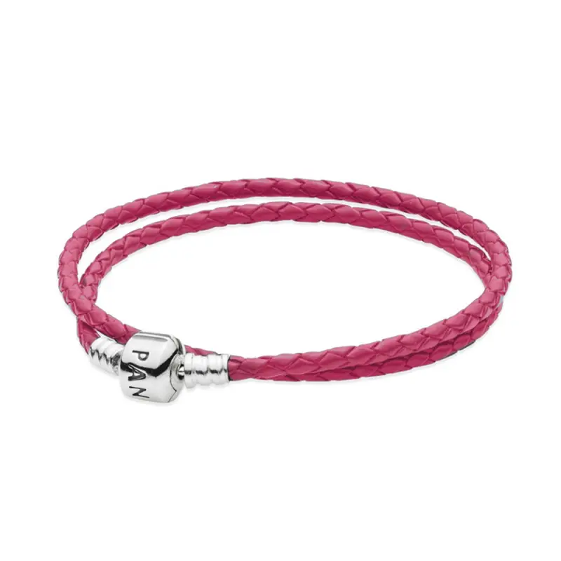 Bracelete PANDORA De Couro Rosa Dupla Com O Fecho