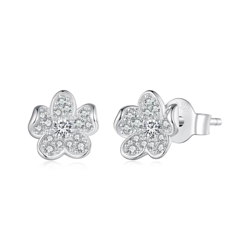Brincos de Argola com Flor Incrustada de Diamantes Estilo Pandora - BSE855