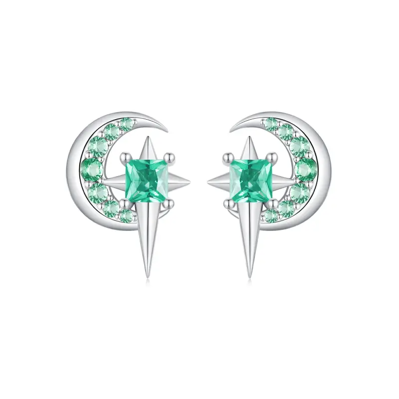 Apresentamos nossos refinados Brincos Estilo PANDORA Estrela e Lua! Estes deslumbrantes brincos apresentam um design celestial inspirado nas estrelas e na lua. Os brincos são adornados com pedras de vidro verde-claro que cintilam e brilham, lembrando um céu estrelado deslumbrante. Fabricados com atenção aos detalhes, estes brincos são elegantes e chamativos, perfeitos para adicionar um toque de beleza celestial a qualquer visual. Eleve seu visual com estes brincos estrela e lua e deixe seu estilo brilhar como o céu noturno.