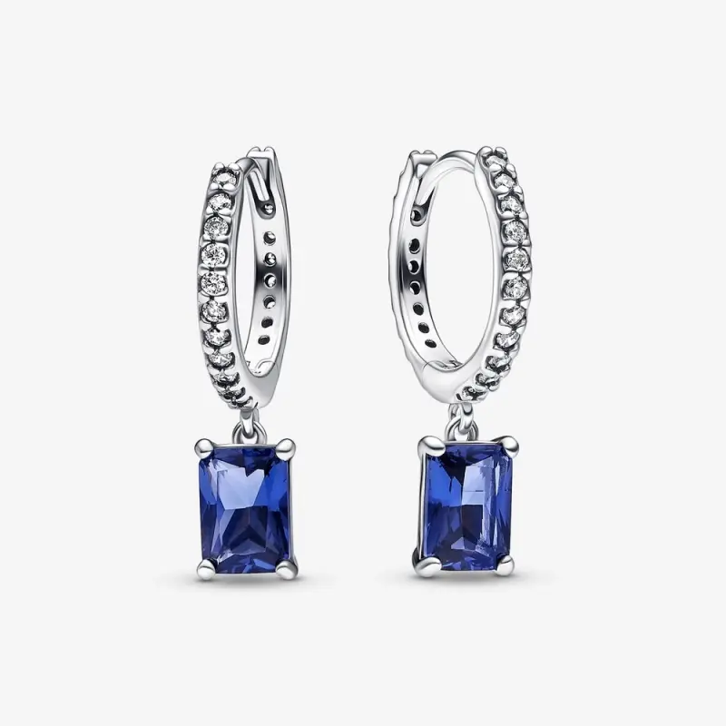 Brincos Pandora Blue Retangulares com Argola Cintilantes - 292381C01