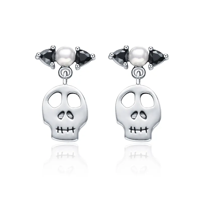 Brincos Pandora Style Silver Personalidade Caveira Pingente - VSE084