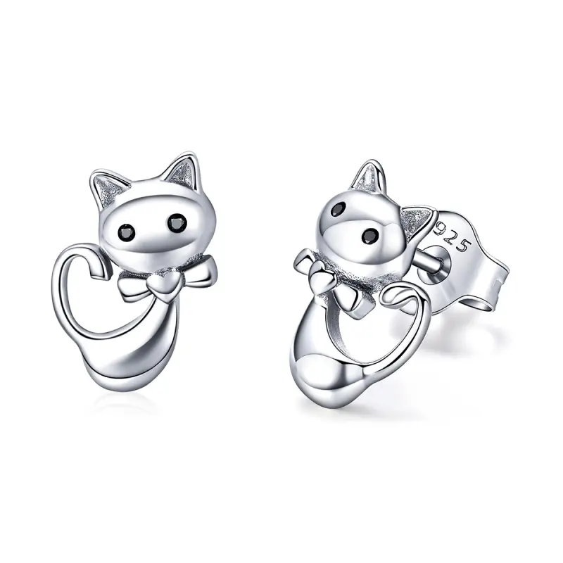 Brincos Petit Gato pegajoso estilo Pandora - SCE450