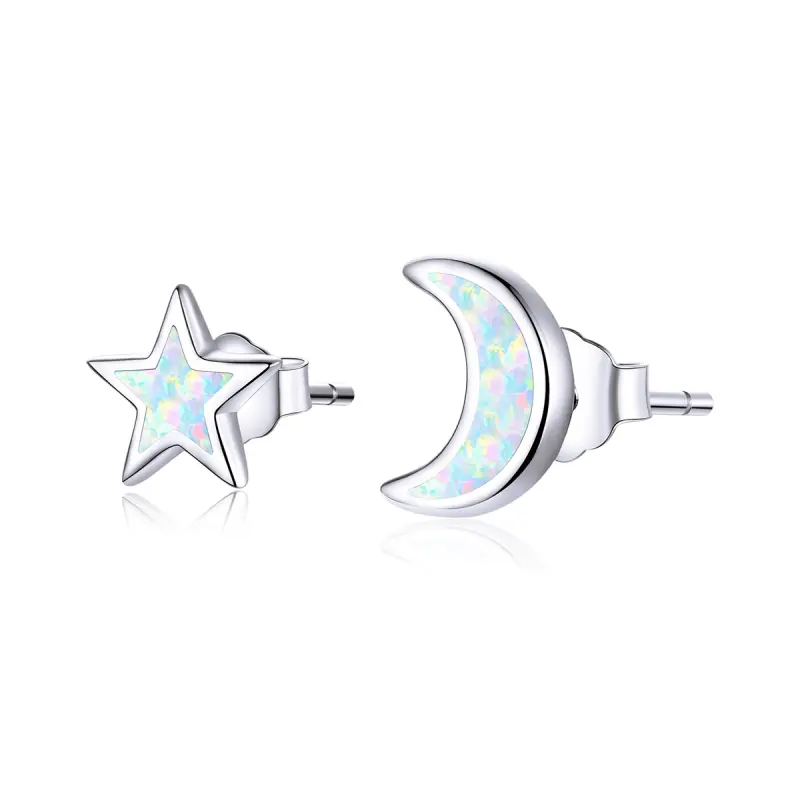 Brincos Petit Lua e estrela estilo Pandora - SCE875