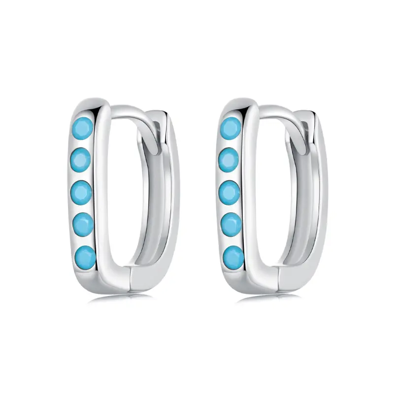 Brincos simples de turquesa estilo PANDORA - BSE1084-BU