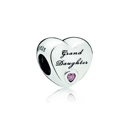 Um charm encantador que celebra avós e netas. Detalhes adoráveis – uma gravação e uma pedra rosa em forma de coração – ilustram o quanto você ama e aprecia sua relação. Charm de coração em prata de lei com 2 zircônias cúbicas rosa em formato de coração com cravação inglesa e a gravação "Granddaughter" (Neta).