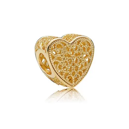 Expresse sua ternura e confiança com este charm de coração em PANDORA Shine™ em prata de lei com banho em ouro 18k. O padrão de filigrana e a cravação em contas criam um sofisticado visual vintage. Charm de coração vazado em PANDORA Shine.