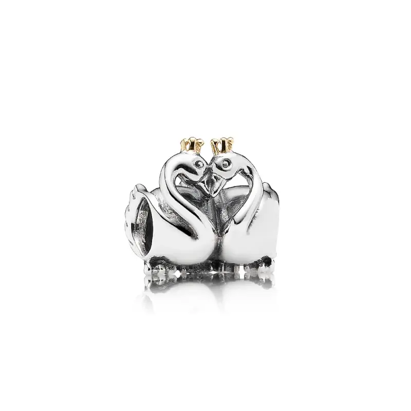Charm PANDORA de Prata e Ouro Cisnes Apaixonados - 791189
