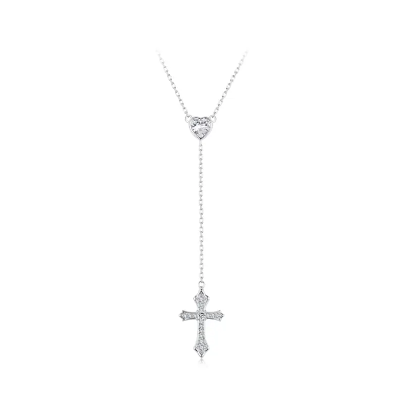 Apresentamos nosso requintado Colar Cruz Estilo PANDORA - BSN384, apresentando uma combinação única de um pingente de cruz com design em forma de coração. O colar é elegantemente trabalhado com uma estrutura de corrente em formato Y, mostrando uma estética moderna e minimalista. Simbolizando felicidade e proteção, esta peça é um acessório perfeito para adicionar um toque de sofisticação ao seu visual. Faça uma declaração com este colar estiloso e significativo que incorpora moda e simbolismo.