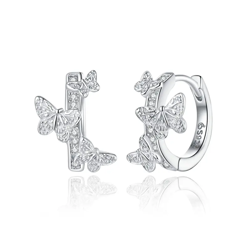 Pandora Style Butterflies Flying Hoop Earrings - BSE445