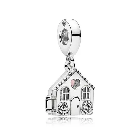 No formato de uma adorável casinha com rosas plantadas e detalhes de coração, este charm pendente em prata de lei se abre para revelar o doce sentimento "Home is where mom is" (Lar é onde minha mãe está). É um presente que será apreciado por qualquer mãe. Charm pendente de casa em prata de lei com esmalte rosa-claro transparente e a gravação "Home is where mom is" (Lar é onde minha mãe está).