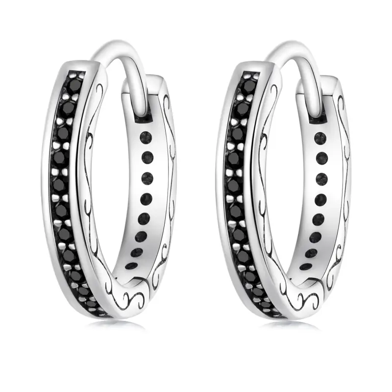 Pandora Style Black Zircon Hoop Earrings - SCE1522