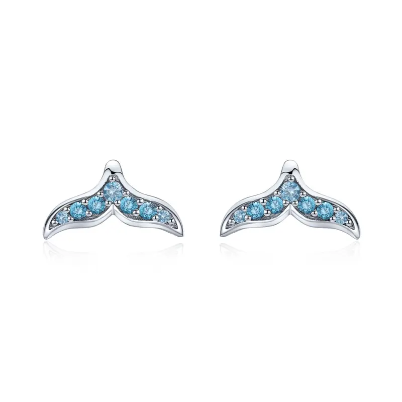 Pandora Style Blue Fishtail Stud Earrings - BSE058