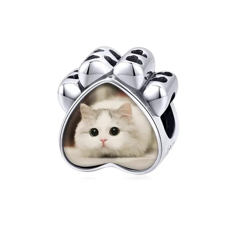 Pandora Style Cat Paw Personalized Photo Charm - SCC1436