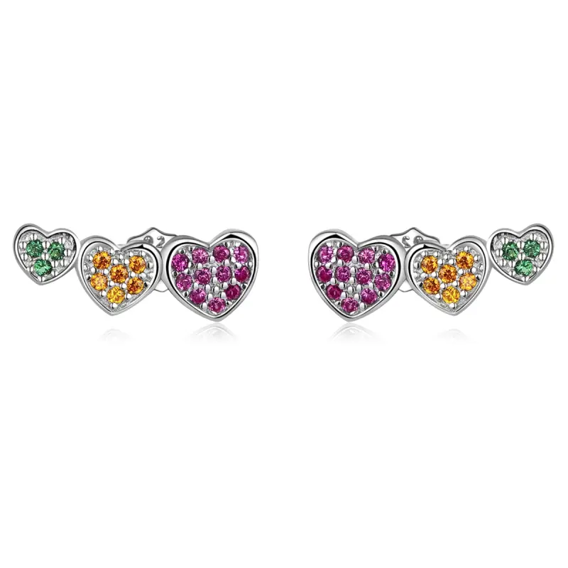 Pandora Style Colorful Hearts Stud Earrings - BSE588