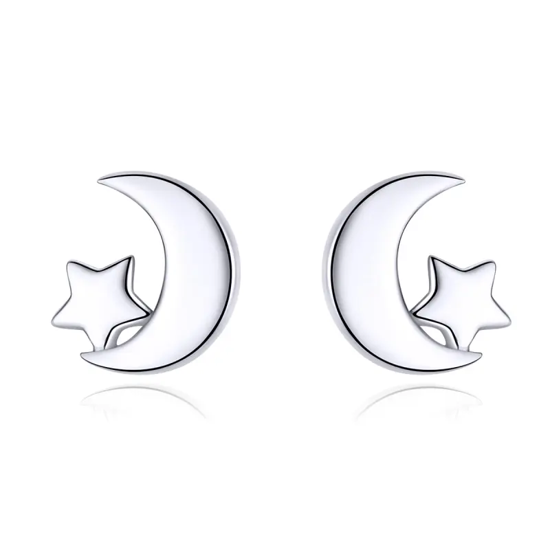Pandora Style Moon and Stars Stud Earrings - SCE726