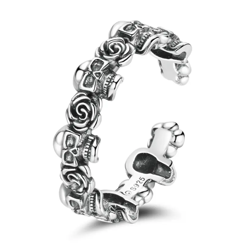Pandora Style Rose Skull Open Ring - BSR218