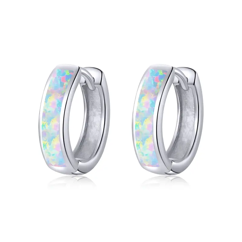 Pandora Style Simple Opal Hoop Earrings - SCE861
